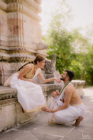 After a brief brainstorming session, we decided to explore a nearby temple that, while not as grand as Modhera, offered a similar charm. This smaller temple had intricate carvings and a serene environment, perfect for creating stunning visuals that still captured the essence of the couple's love.